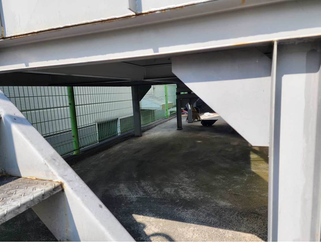 위 사진에서 보시는 것 처럼, 집진기 하부로 활성탄을 배출하더라도 사다리에 간섭을 받아서 톤백에 바로 쏟아 넣기 어려운 여건을 가지고 있었고, 집진기 다리 높이조차 낮아서 사람이 들어가서 작업하기에 어려운 조건이었습니다.