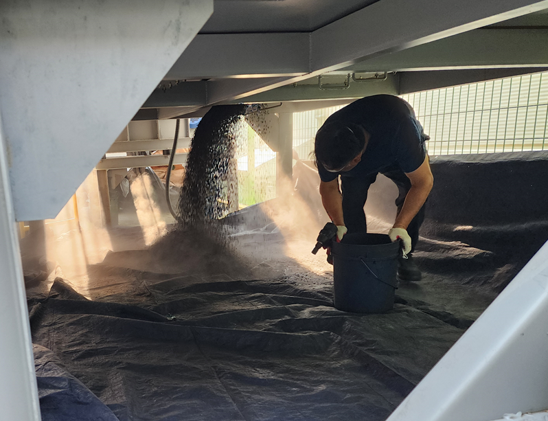 집진기 바닥의 보양작업을 한 후 활성탄을 배출해내는 모습입니다.