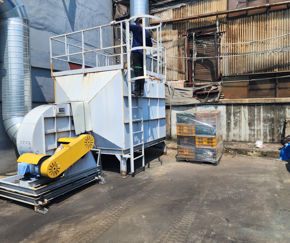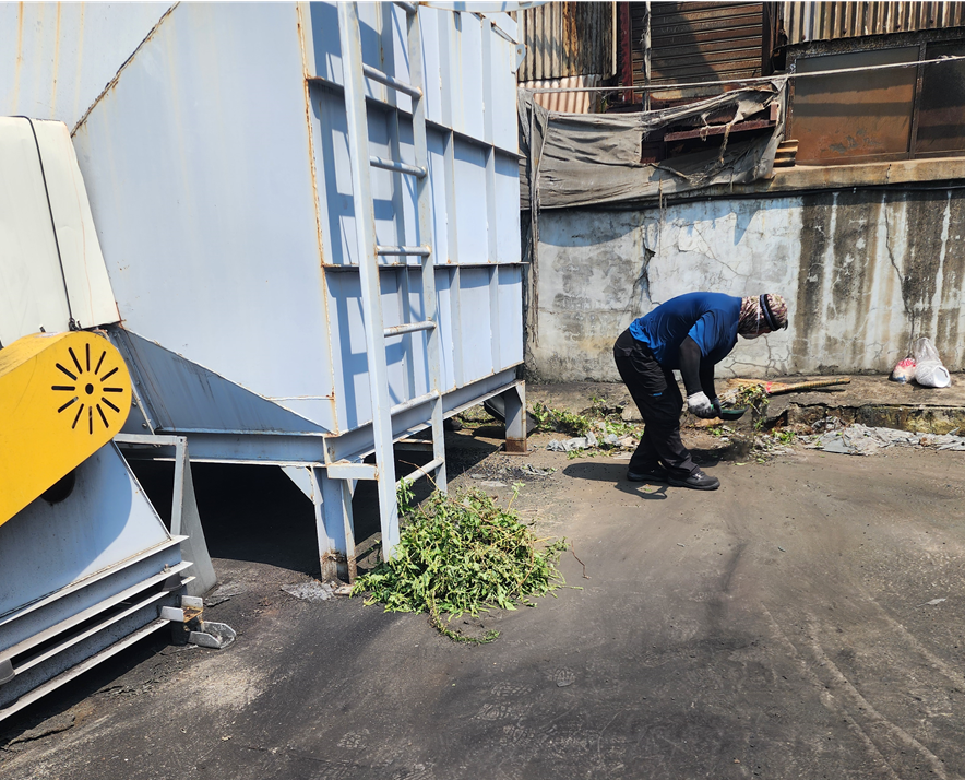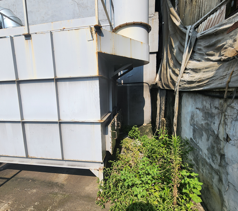 집진기가 구석에 위치해 있고, 뒤쪽으로 배출하는 공간이 많이 협소했습니다.